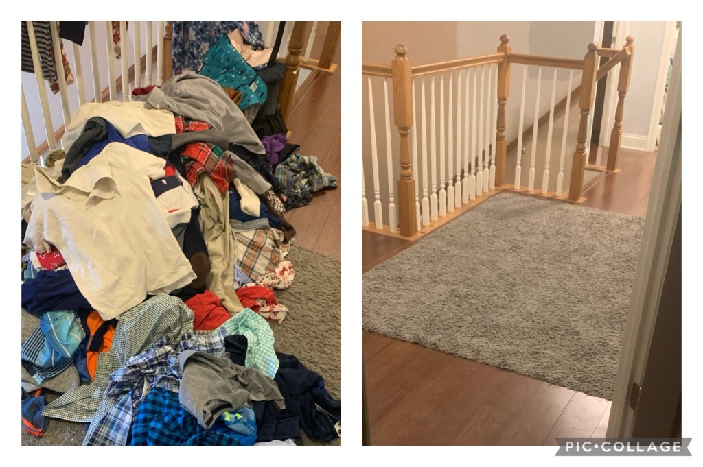 The minimalism challenge has been a very easy way to start my family’s Decluttering Adventure. The five items I purged for today, the fifth day for the challenge, were 5+ clothing items from the landing for donation.